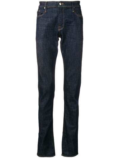 Dark blue cotton blend slim jeans from FRAME featuring a mid rise, a button & zip fastening and a five pocket design.