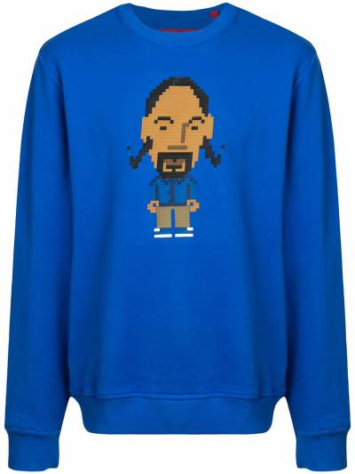 Blue cotton Foshizz sweatshirt from Mostly Heard Rarely Seen 8-Bit featuring a ribbed round neck, long sleeves, a motif and a ribbed hem.