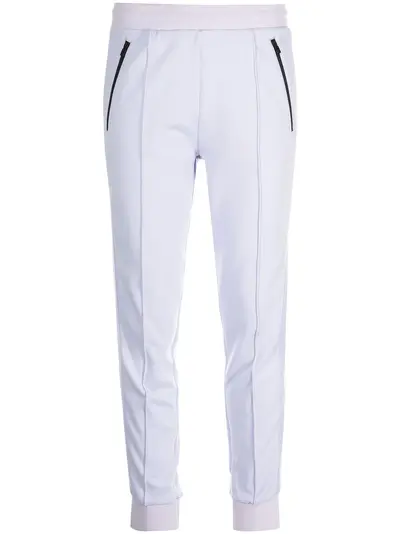 lilac two side zip-fastening pockets elasticated waistband slim cut elasticated ankles