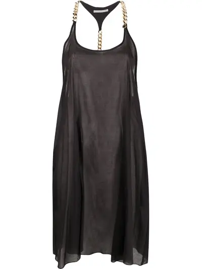 black organic cotton scoop neck wide shoulder straps gold-tone hardware mid-length