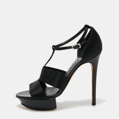 Gina Black Satin Ankle Strap Platform Sandals Size 37.5 721452 (чёрный, lpn19988262)