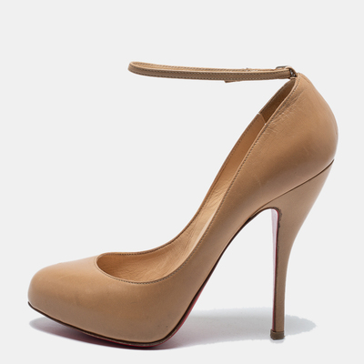 Christian Louboutin Beige Leather Ankle Strap Pumps Size 37.5 725360 (бежевый, lpn20159426)