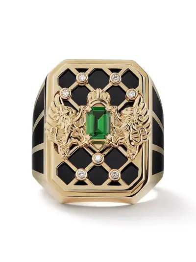 18kt yellow gold tsavorite onyx lacquer round cut diamonds