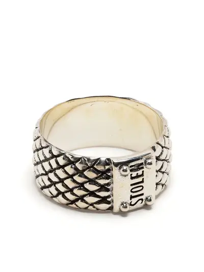 Snake sterling silver band ring from Stolen Girlfriends Club featuring silver-tone, sterling silver, engraved logo, distressed effect and slip-on style.