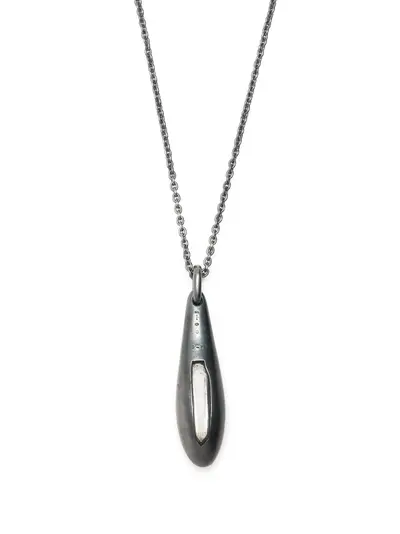 gunmetal grey oxidised sterling silver quartz statement pendant rolo chain bar-pin fastening