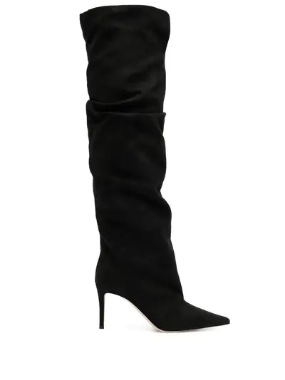 black calf leather/cotton blend ruched detailing pointed toe slip-on style branded insole high 85mm stiletto heel