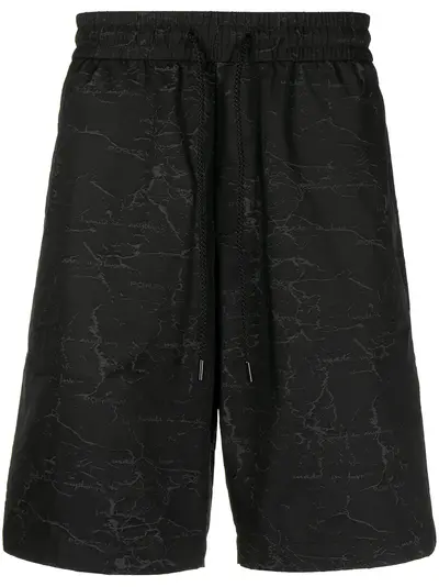 black all-over logo print elasticated drawstring waistband two side slit pockets knee-length two rear welt pockets