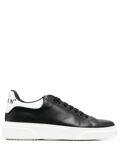 black white round toe front lace-up fastening logo patch at the tongue contrasting branded heel counter flat rubber sole