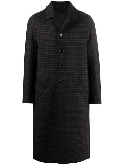 chocolate brown/black wool felted finish bold check pattern classic collar front button fastening slip pockets to the sides