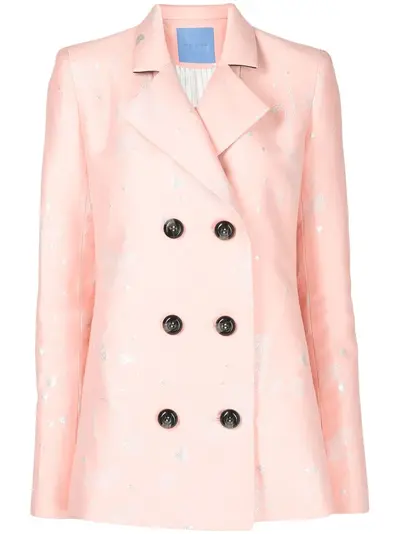 pink/silver-tone cotton blend full jacquard wide notch lapels double-breasted button fastening long sleeves straight hem central rear vent