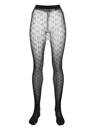 black semi-sheer construction monogram jacquard high-waisted elasticated waistband covers foot Be sure before opening, as socks and hosiery can only be returned in their original, unopened packaging.