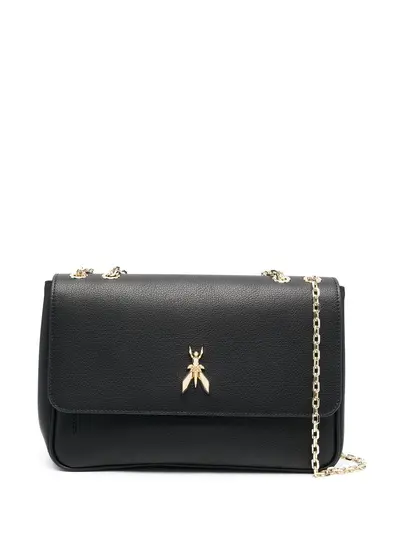 black calf leather gold-tone hardware foldover top with press-stud fastening chain-link shoulder strap main compartment internal zip-fastening pocket