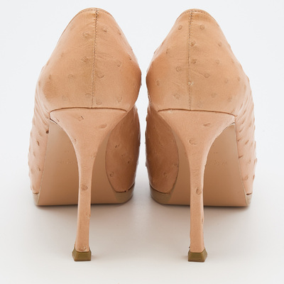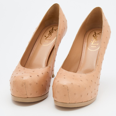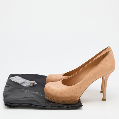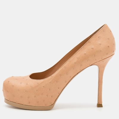 Yves Saint Laurent Beige Ostrich Leather Tribtoo Platform Pumps Size 37.5 724362 (бежевый, lpn20387999)