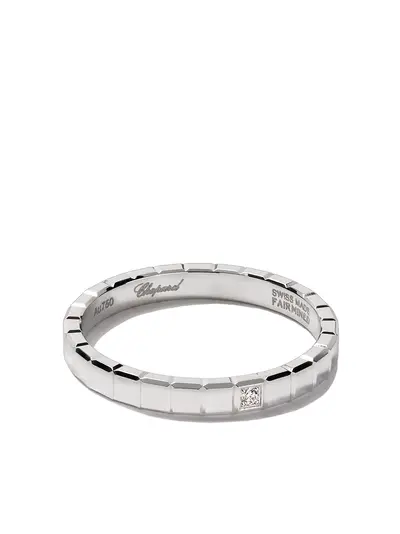 Chopard’s ‘Ice Cube’ collection is comprised of meticulously-crafted, faceted squares reflecting the geometry of glistening ice cubes. Designed to be worn stacked, the rings in this collection channel cool elegance with a contemporary edge. Crafted in Italy from 18kt white gold, this ethical-certified ‘fairmined’ Ice Cube Pure ring features a round brilliant-cut white diamond at the centre, offering an understated hint of sparkle. Inspired by the vision of ice, the cubic geometrical shape allows for an exquisite frosty sharpness. The total diamond content is 0.01ct. This Chopard product is made of 100% Ethical Gold, acquired from responsible sources and verified against international best practices on environmental and social standards.