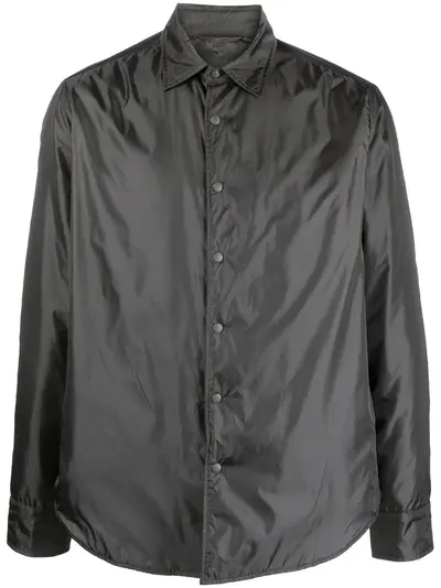 charcoal grey classic collar front button fastening front press-stud fastening long sleeves curved hem