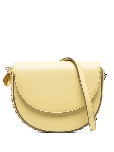 light yellow faux leather whipstitch detailing chain-link detailing logo tag foldover top with magnetic fastening Conscious: We've partnered with Good On You – an ethical agency that rates how sustainably brands perform. This product comes from a brand that performs well in relation to their impact on animals.