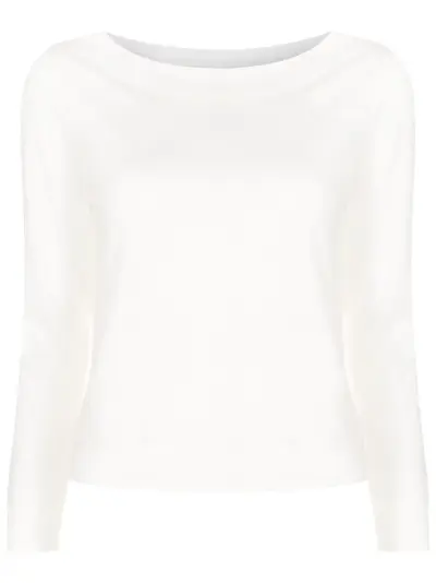 off-white jersey knit round neck long sleeves straight hem