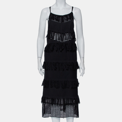 Sea Black Cotton Cutwork Paneled Fringed Midi Dress M 437611 (чёрный, lpn20615357)