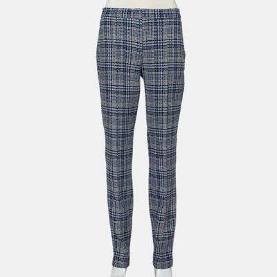 Off-White Blue & Grey Patterned Wool Zip Detail tapered Leg Pants M 433996 (голубой, lpn20615393)
