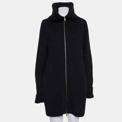 Haider Ackermann Black Wool Knit Collared Zip Front Oversized Long Cardigan XXS 431460 (чёрный, lpn20615522)