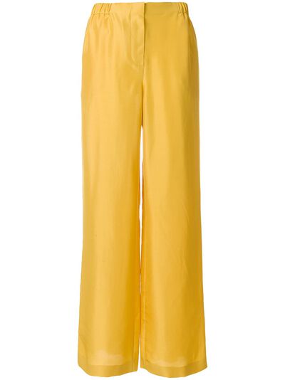 Yellow silk high-waist flared trousers from Alberta Ferretti featuring a high waist, a flared style and a regular length.