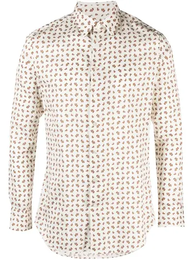 cotton white/multicolour paisley print classic collar front button placket buttoned cuffs curved hem