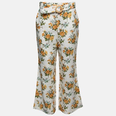 Zimmermann White Floral Printed Linen Belted Straight Pants M 744329 (белый, lpn20749075)