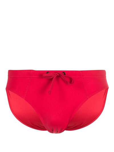 bright red stretch-design logo print to the rear drawstring fastening Be mindful to try on swimwear over your own garments.