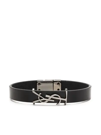 black/silver-tone calf leather silver-tone logo lettering clasp fastening