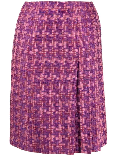 circa 2000s electric purple carrot orange wool-cotton blend tweed concealed rear zip fastening high waist pleat detailing thigh-length straight hem silk lining Condition: GOOD. This previously owned and used item is in good condition with minimal signs of use. This may include fading of material or plating and scratches.