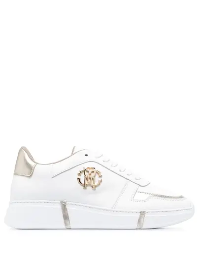 white leather gold-tone logo plaque logo-print tongue front lace-up fastening flat rubber sole round toe
