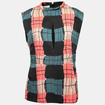 Marni Multicolor Printed Silk Crepe Keyhole Cutout Top M 751627 (lpn20966544)