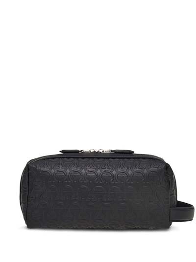 black calf leather Gancini print top zip fastening main compartment