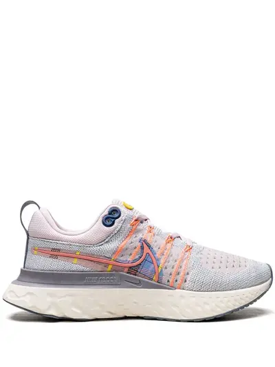 pink foam/blue tint Flyknit construction signature Swoosh logo detail round toe front lace-up fastening pull-tab at the heel signature React midsole rubber sole These styles are supplied by a premium sneaker marketplace. Stocking only the most sought-after footwear, they source and curate some of the most hard to find sneakers from around the world.