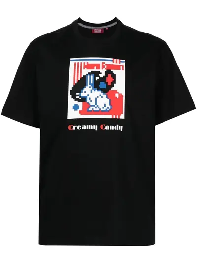 black/multicolour cotton graphic print to the front crew neck short sleeves straight hem