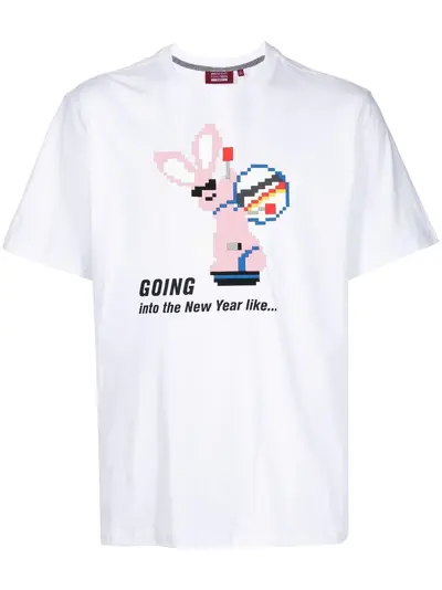 white/multicolour cotton graphic print at the chest crew neck short sleeves straight hem