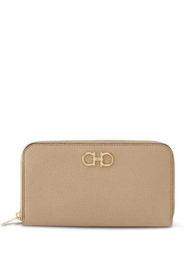 deer brown calf leather Gancini plaque top zip fastening internal zip-fastening pocket