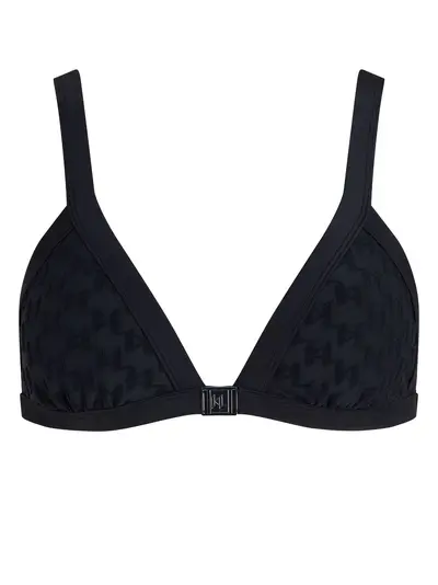 black debossed monogram pattern triangle cup rear clasp fastening Be mindful to try on swimwear over your own garments.