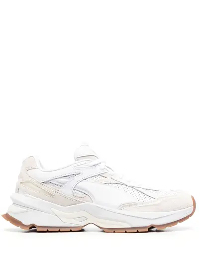 white calf leather suede panels almond toe front lace-up fastening logo-embossed tongue rubber sole