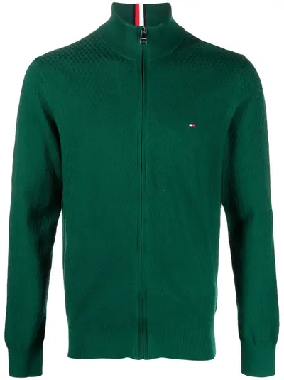green cotton embroidered logo at the chest front zip fastening long sleeves high neck ribbed hem ribbed cuffs