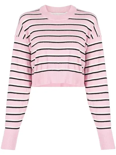 light pink cotton blend horizontal stripe pattern crew neck long sleeves ribbed trim