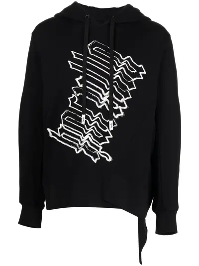 black/white cotton logo print to the front logo print to the rear layered details drawstring hood long sleeves