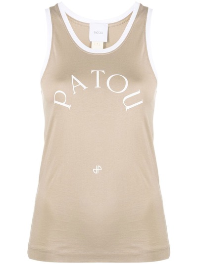 beige white cotton two-tone design logo print to the front round neck sleeveless straight hem