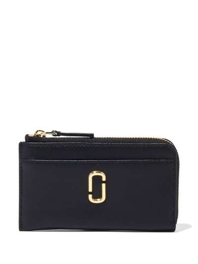 black leather gold-tone logo plaque chain-link detailing top zip fastening card slots coin pocket