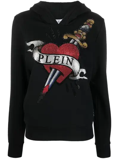 black cotton blend glass crystal embellishment logo print to the front logo print to the rear logo-embossed patch to the rear classic hood elasticated waistband fitted-cuff sleeves