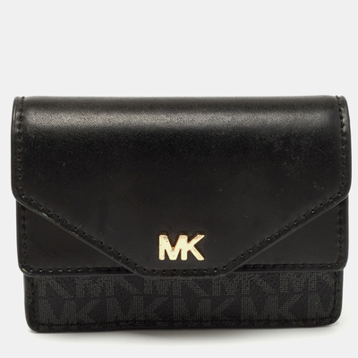 Michael Kors Black/Grey Signature Coated Canvas and Leather Card Case 770411 - 1 small