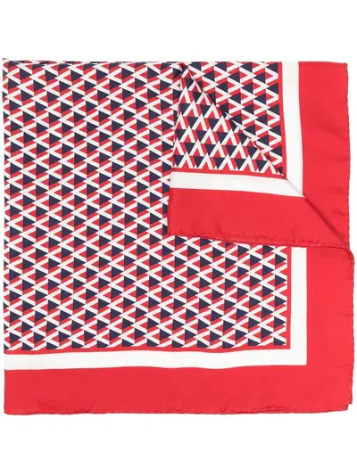 Valentino Ready To Wear red/white/blue Veehive print solid border square shape logo print to the side finished edge