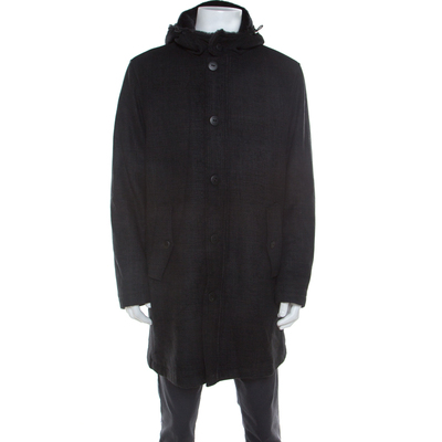 Elevate your wardrobe value with this creation from Armani Collezioni. It is a must have piece for a man with style. This black coat is made from quality fabrics and designed with fur and a hood. This coat is well made and is just perfect to nail a stylish look.
