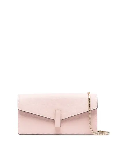 light pink calf leather grained texture gold-tone hardware foldover top twist-lock closure detachable shoulder strap internal card slot main compartment