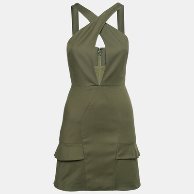 Cushnie Et Ochs Safari Green Stretch Cotton Keyhole Detail Mini Dress XS 212365 (зелёный, lpn4137452)
